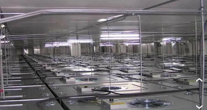 第三種形式就是主要講的FFU循環(huán)風(fēng)系統(tǒng),這套系統(tǒng)在半導(dǎo)體制造行業(yè)應(yīng)用最廣泛的一種形式。這種形式的特點由FFU提供循環(huán)空氣的動力,整個循環(huán)空氣通過一臺一臺小風(fēng)機進行循環(huán)風(fēng)系統(tǒng),在FFU操作引擎的時候,在施工的時候都不會造成影響,用起來非常方便,并且節(jié)省空間,另外非常重要一點是潔凈度安全性高。我們根據(jù)市場的情況設(shè)備不同的往里進,安裝施工包括施工人員還有機器在施工的過程中一直存在,如果安全度不高受到干擾的話,對生產(chǎn)會造成影響,所謂的缺點就是維護成本高。
