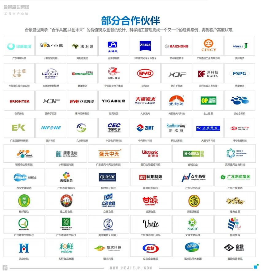 穩(wěn)中求進(jìn),久久為功。合景實(shí)業(yè)堅(jiān)持品質(zhì)驅(qū)動(dòng)、服務(wù)支撐、創(chuàng)新引領(lǐng)的戰(zhàn)略方針,作為機(jī)電凈化工程、辦公室裝修工程EPC建設(shè)專家,精耕項(xiàng)目建設(shè)20余年,與眾多優(yōu)秀行業(yè)百強(qiáng)企業(yè)、上市企業(yè)建立了戰(zhàn)略合作,承建過多個(gè)工程標(biāo)準(zhǔn)和優(yōu)質(zhì)工程,未來,合景實(shí)業(yè)將繼續(xù)從實(shí)際出發(fā),踏浪前行,智創(chuàng)未來。